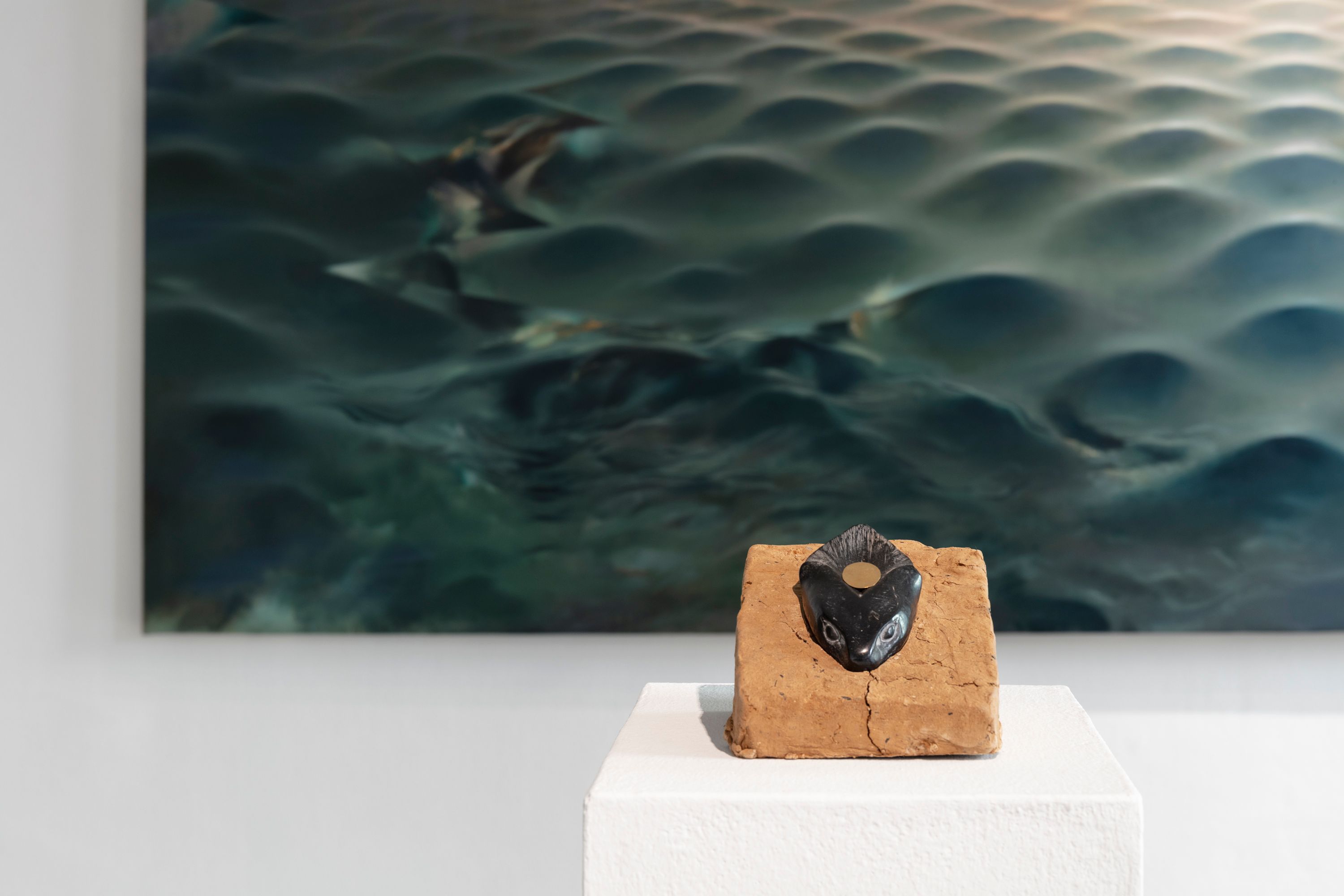 The joint exhibition of Jan Uldrych and Adam Kašpar at Galerie Kvalitář presents the convergence of two artists who metaphorically descend into deep primordial waters and the vortices of archetypal symbols. Both are long rooted in the medium of painting, through which they reveal, at times suggestively, intuitively or sporadically analytically, the hidden codes inscribed in the sediments layered between the natural and the civilizational. In this case, hieros gamos is a consensual commitment by both authors to collaborate on a single exhibition, each representing an inclination toward one of the poles of this “sacred marriage.” This ancient term reaches back to the earliest civilizations, evolving dynamically from Sumerian, Assyrian and Babylonian cultures through Egyptian and Greek traditions, later infiltrating alchemical thought and Jungian psychology, all the way to the broader European cultural sphere as we know it today. The meaning of hieros gamos originally lies in the mythological realm, where the male and female principles unite on a divine level. It denotes the ritual joining of two distinct forces whose tension generates new meaning. In ancient cultures, this act did not ensure harmony but fertility, stability and a creative impulse – a power arising from opposition. Let us now consider how this primordial legacy is reflected in the brushstrokes of the two artists.